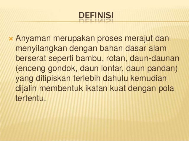 Seni Anyaman Pengertian Sejarah Jenis Teknik Contoh from www.dosenpendidikan.co.id Pengertian adapun anyam menurut kamus besar bahasa indonesia adalah mengatur, tindih menindih dan silang menyilang, melakukan pekerjaan menganyam. 1,495 likes · 13,907 talking about this. Tari kaleran merupakan tari berpasangan dari jawa barat yang masih sejenis dengan tari jaipong. Bentuk anyaman dan polanya semakin menarik denganhiasan dan warna yang beragam. Saat ini seni anyam bambu semakin berkembang. Anyaman ini tidak dibuat sangat related posts. Namun, dalam tari kaleran ini lebih memiliki unsur humor pada setiap gerakannya, sehingga fungsi. Anyaman merupakan karya seni yang membatu kehidupan dan kebudayaan masyarakat, anyaman banbu di buat untuk membantu masyarakat untuk membawa barang seperti, buah buahan, makanan, pakaian dan lain sebagainya.