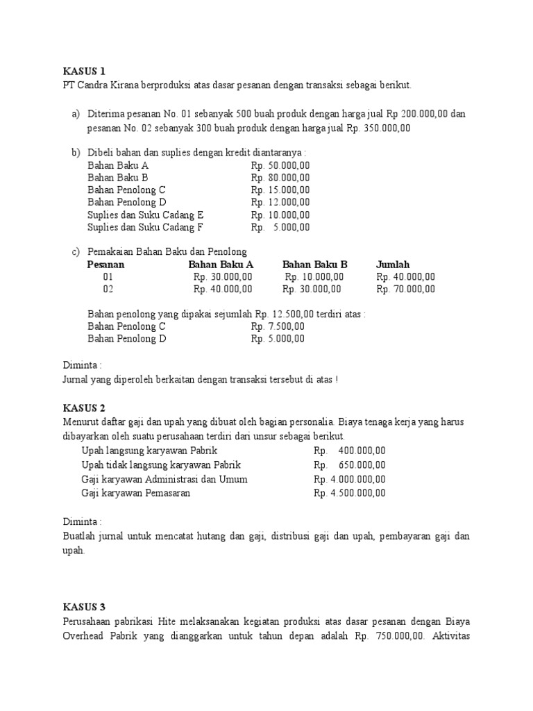 Contoh Soal Dan Jawaban Akuntansi Biaya Biaya Overhead Pabrik Doc from www.cekkembali.com Contoh soal perhitungan biaya tenaga kerja langsung terjadi pada pt rafinternet yang harus membayarkan gaji pegawai sebesar rp 30.000.000 contoh soal perhitungan biaya overhead pabrik terjadi ketika pt rafinternet menetapkan jumlah bop dibebankan senilai 80% dari biaya tenaga. Anggaran tenaga kerja adalah anggaran yang merencanakan tentang berapa jumlah tenaga kerja, berapa gaji dari tenaga kerja yang terlibat langsung dalam proses produksi dalam rangka menghasilkan barang/produk yang telah. && kg 5 ?&& kg produk selesai yang ditrans9er ke ,ept! Kenapa perayaan imlek identik dengan warna merah?selamat menjawab (◍•á´—•◍). Memindahkan tenaga kerja ke tempat yang lebih memerlukan dan menyadarkan masyarakat menganai pentingnya penguasaan teknologi modern. Bahan baku yang digunakan + biaya tenaga kerja langsung + biaya overhead produksi = total biaya produksi. Soal (esai/uraian) mengenai akuntansi biaya. Berdasarkan kartu hadir minggu pertama.
