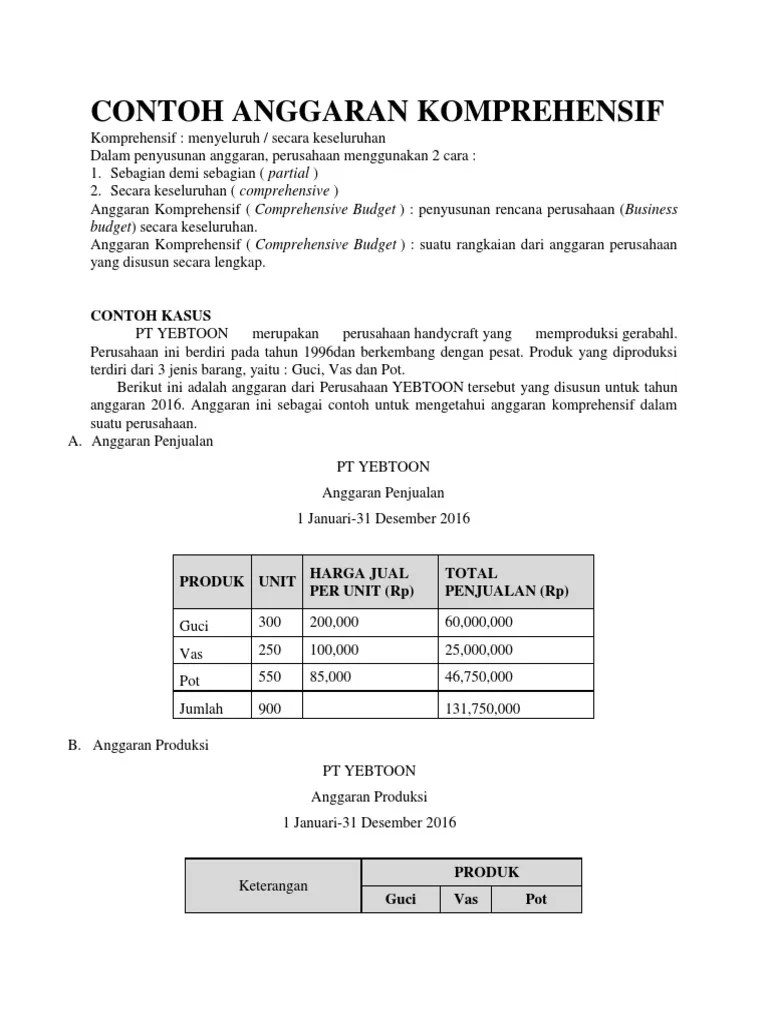 Misalnya perusahaan hanya menyususn anggaran produksi saja penjulan atau keuangan saja. Contoh soal anggaran bahan baku perusahaan akan menyusun anggaran . Soal dan jawaban penganggaran perusahaan tentang anggaran produksi dengan pola satabilitas . Soal & jawaban penganggaran perusahaan. Penetapan rencana besar perusahaan seperti tujuan, kebijakan, asumsi sebagai dasar penyusunan anggaran.