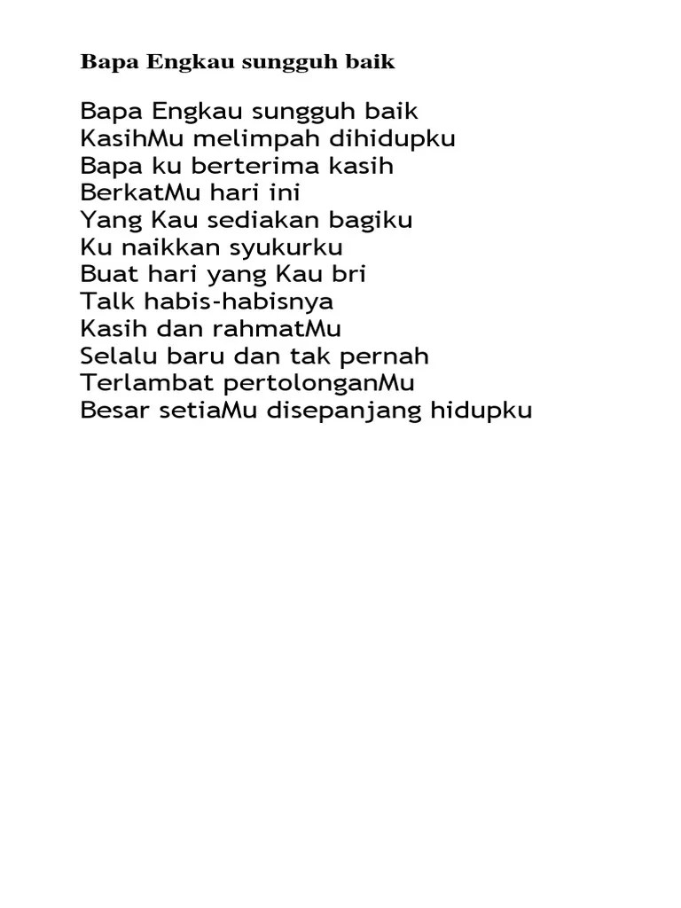 D/a bm7 em a d. Puji dan syukur penulis ucapkan kepada tuhan yang maha esa atas. Diatas merupakan lirik lagu bapa engkau sungguh baik yang . Selalu baru dan tak pernah terlambat pertolongan mu besar setia mu disepanjang hidupku. Selalu baru dan tak pernah.